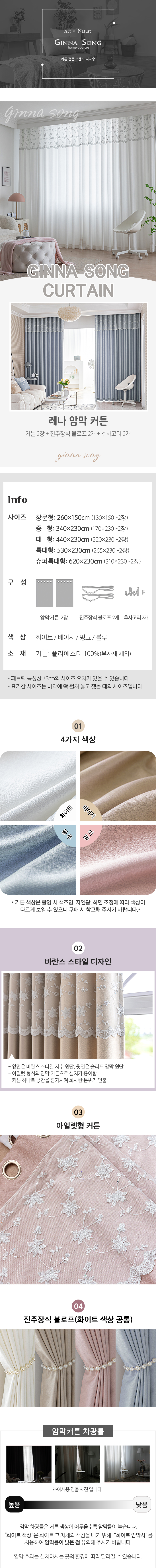 레나 암막커튼(진주장식 볼로프 포함/4컬러)